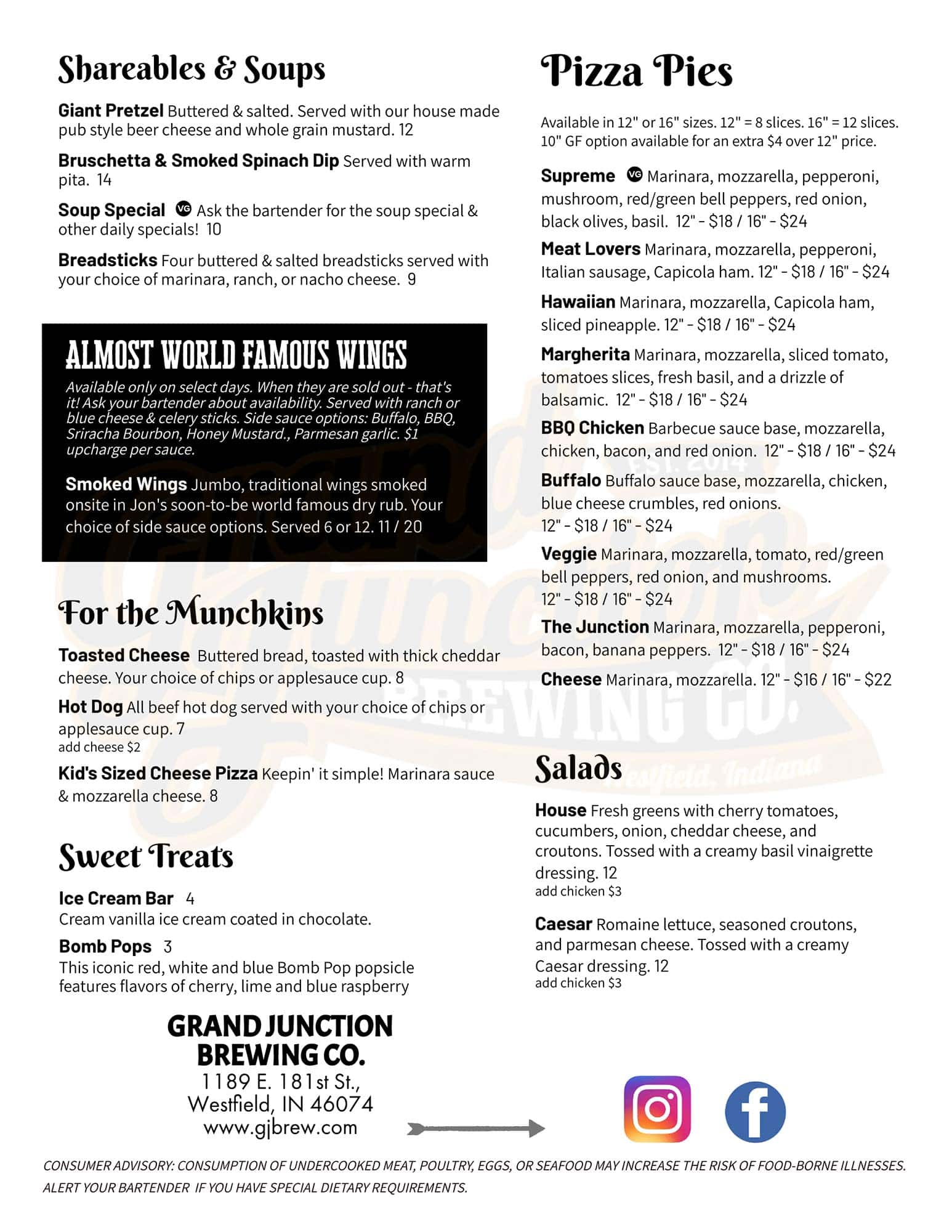 You can’t go wrong when you pair our award-winning beer with our delicious menu items. Our talented team at GJBC has put together a tasty menu of some old favorites along with some new sure-to-please items. There are options available to satisfy every member of the family. We can’t wait to serve you soon.